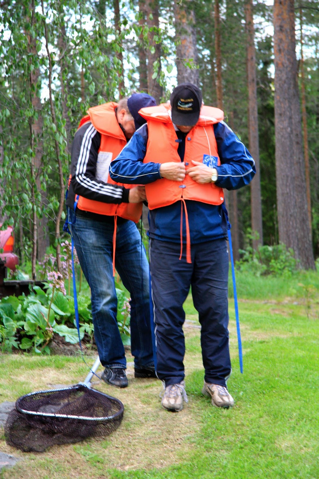 My Master and his little brother he put the life wests on, when they go fishing Midsummer salmon. They put life jackets on carefully also between the legs. There has been several accidents so they have learned their lesson.